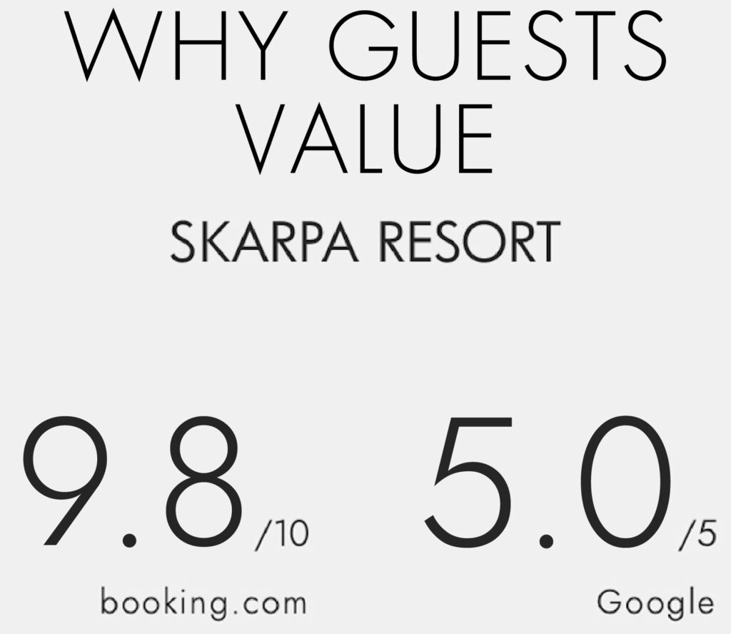 SKARPA resort is close to restaurants, various supermarkets and shops supplied by local suppliers! The kitchens in our cottages are well equipped, so you can enjoy homemade pancakes on the terrace accompanied by aromatic coffee.